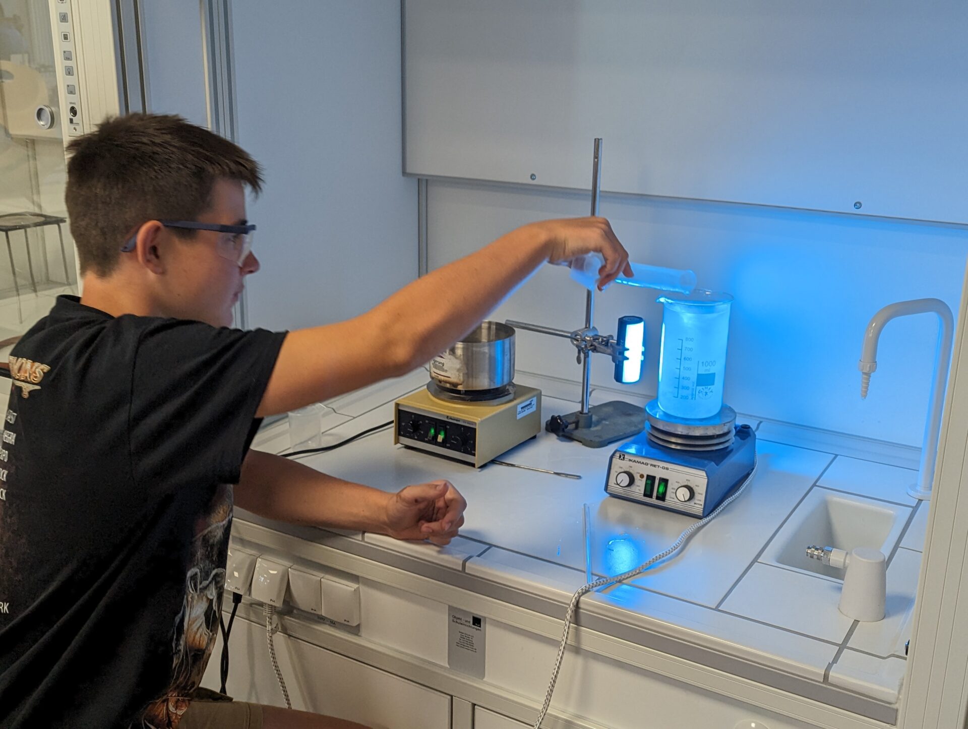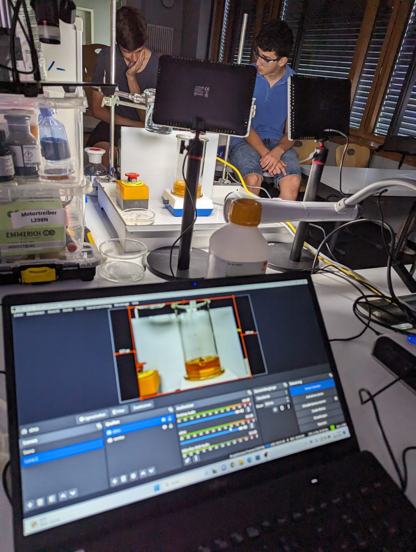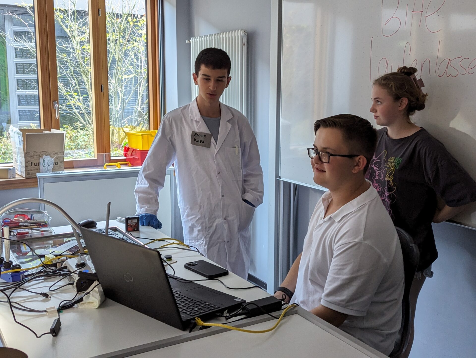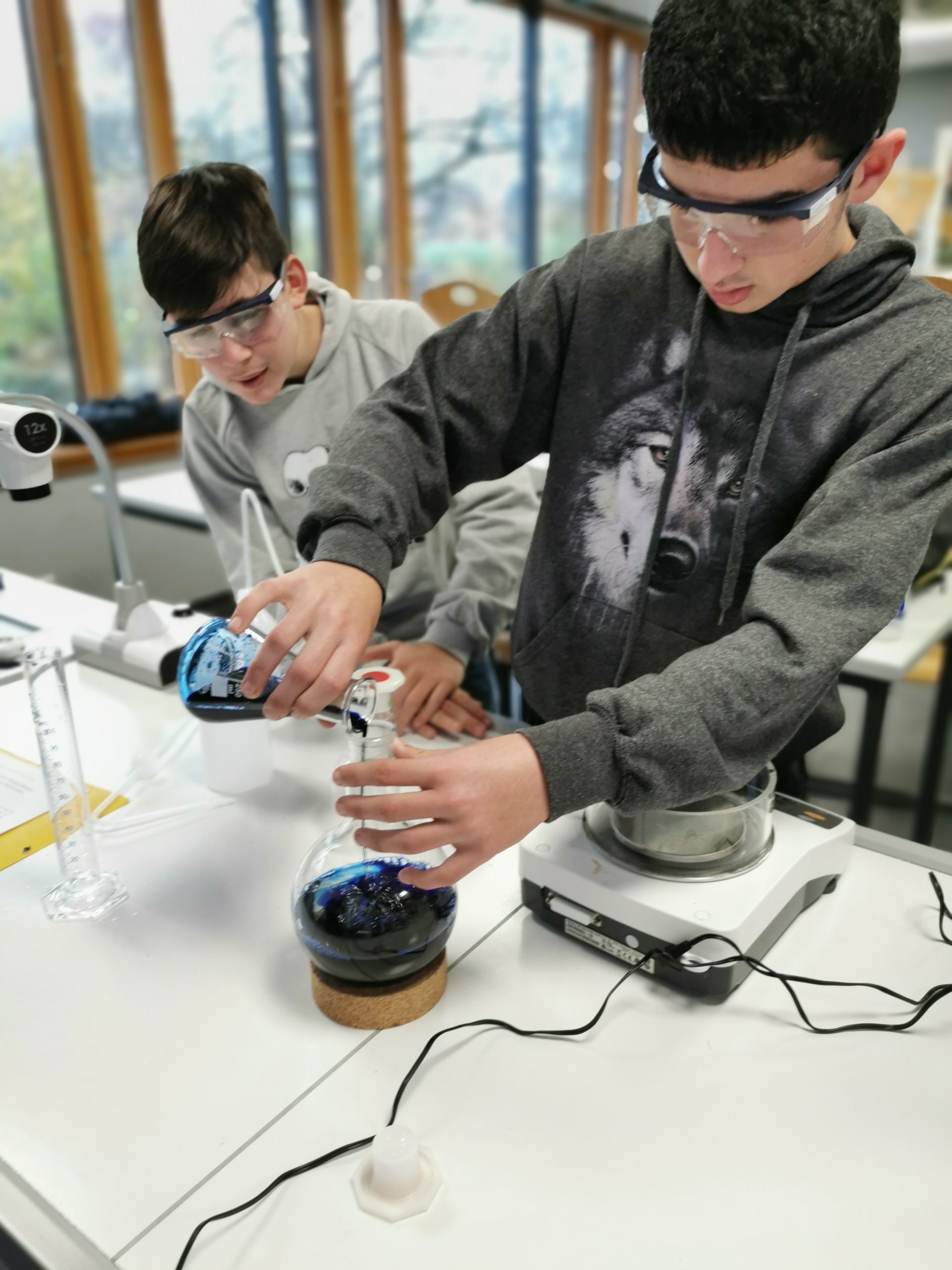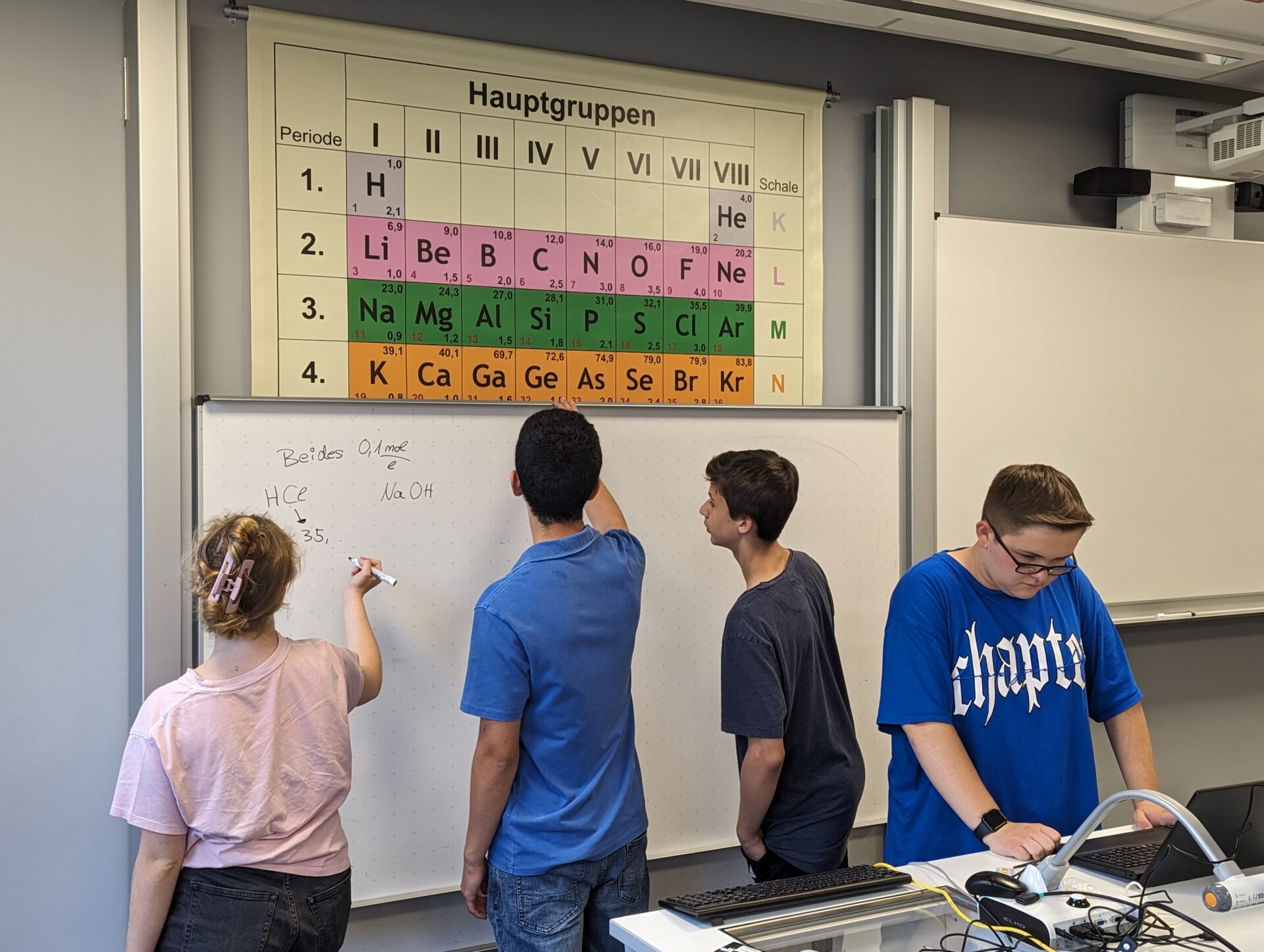 Mit alten Textmarkern, die wir untersucht und zu Tintenkillern „umgebaut“ haben, begann es. Inzwischen haben wir zu vielen Bereichen Experimente geplant, durchgeführt und versucht, sie zu verändern oder gar optimieren. Ein großes Ziel ist es, Chemie-Experimente live im Internet zu zeigen, am besten interaktiv für die Zuschauer. Daran arbeiten wir. Weil wir auch in unserer Schule bei Aktionen wie Weihnachtsbasar und Schaufenster für Grundschüler aktiv sind, kommen wir nicht so schnell voran, wie wir immer wieder neue Ideen haben.