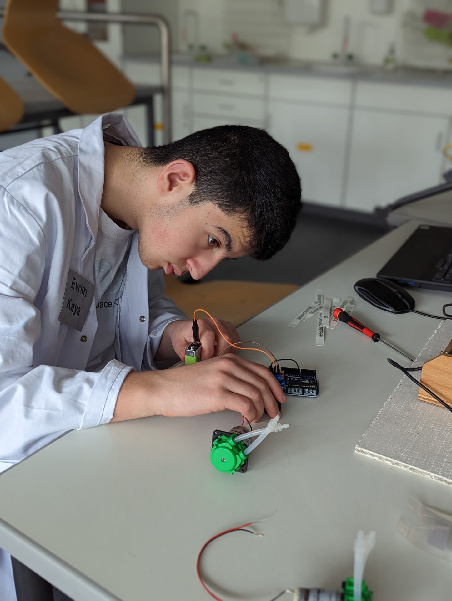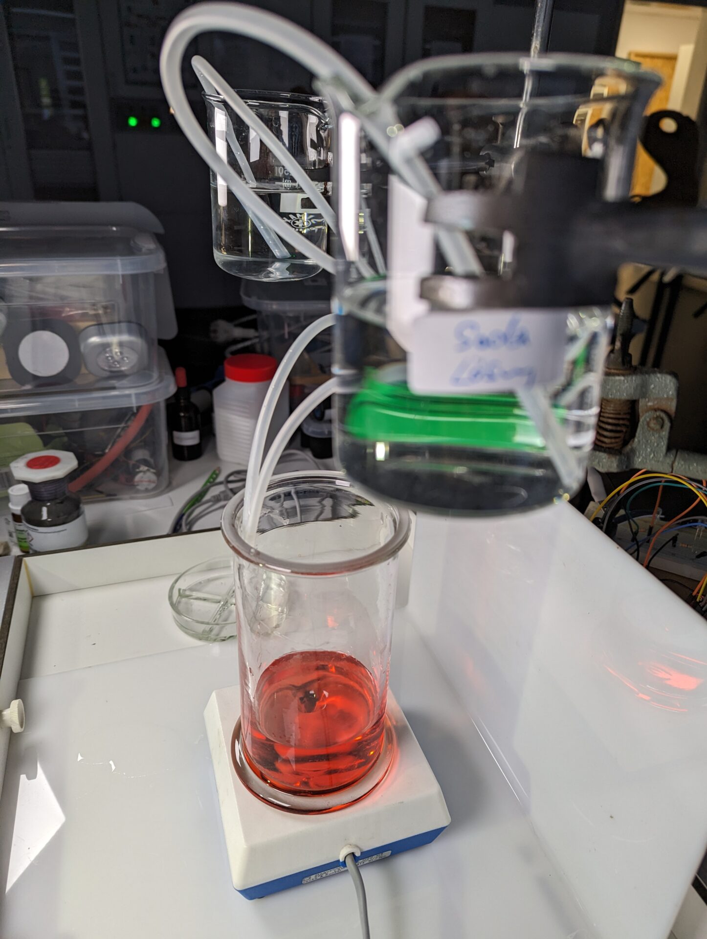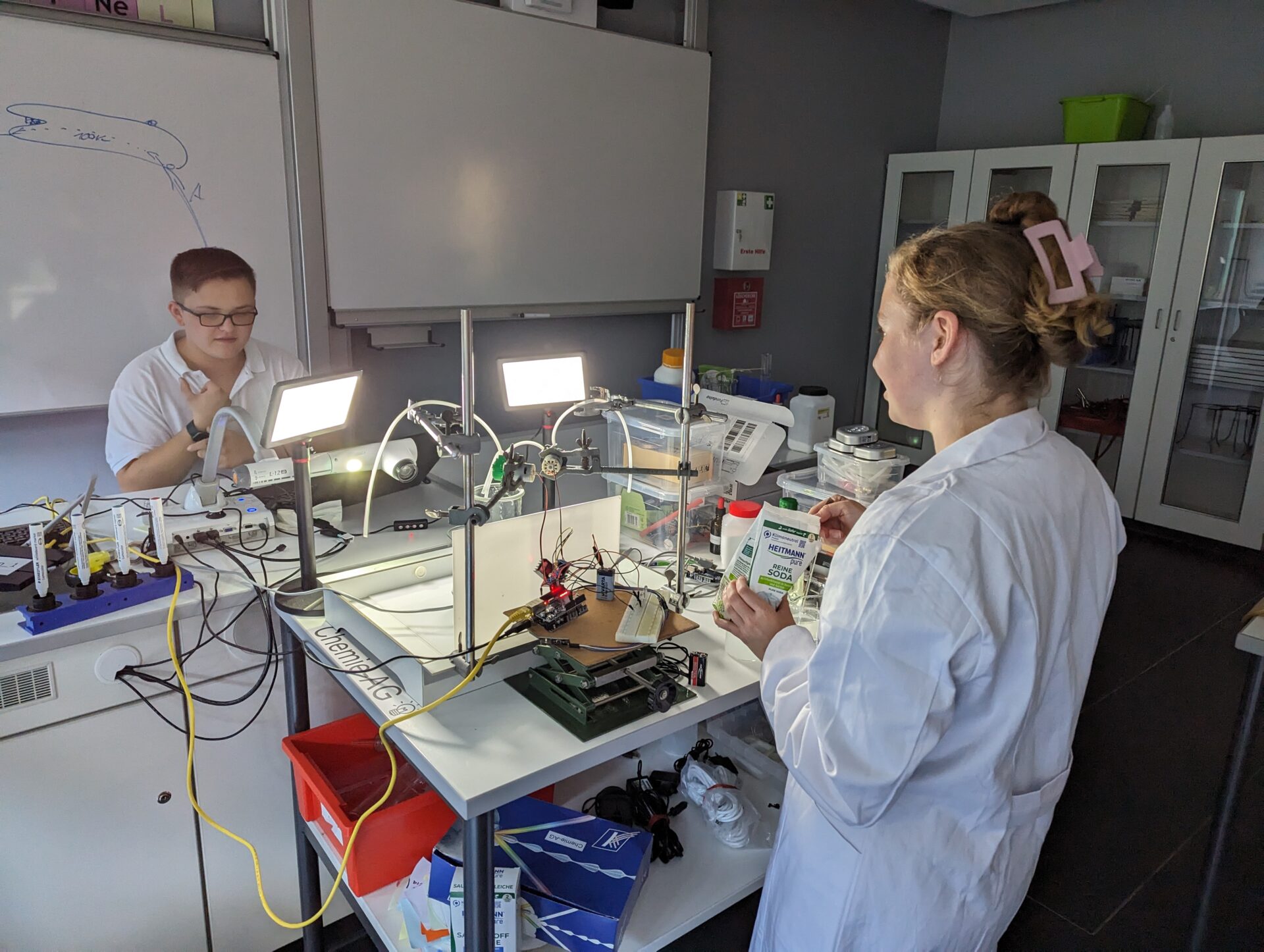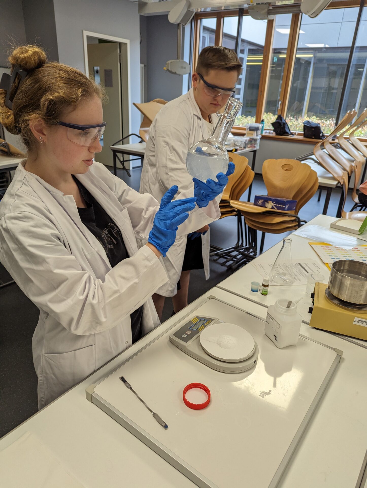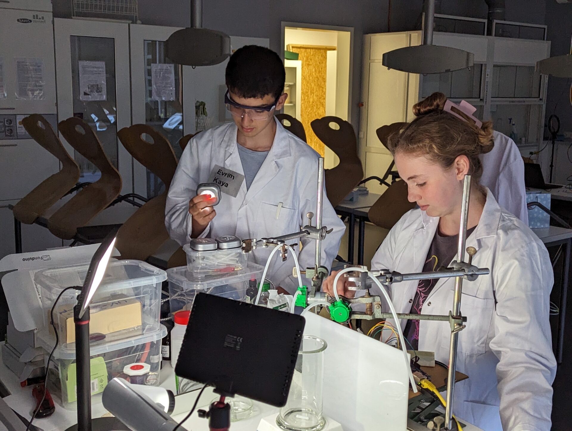 Mit alten Textmarkern, die wir untersucht und zu Tintenkillern „umgebaut“ haben, begann es. Inzwischen haben wir zu vielen Bereichen Experimente geplant, durchgeführt und versucht, sie zu verändern oder gar optimieren. Ein großes Ziel ist es, Chemie-Experimente live im Internet zu zeigen, am besten interaktiv für die Zuschauer. Daran arbeiten wir. Weil wir auch in unserer Schule bei Aktionen wie Weihnachtsbasar und Schaufenster für Grundschüler aktiv sind, kommen wir nicht so schnell voran, wie wir immer wieder neue Ideen haben.
