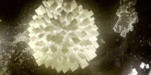 Kristalle entstehen aus Ionen, die in Wasser gelöst sind. Wir haben dabei zugesehen: